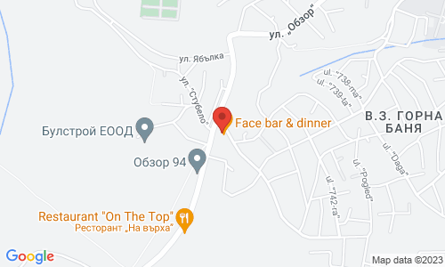 Bar and dinner FACE се намира в Горна Баня на 800 метра надморска височина. Това е място, което те предразполага към отмора и приятно изживяване, място, на което се чустваш добре сред планинскиия въздух и красивата глед